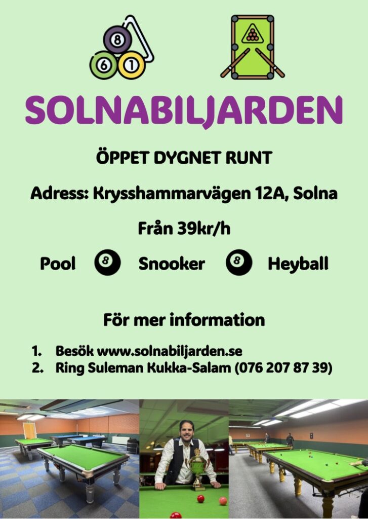 “Vanlig” Biljard kostar 49kr/h per person & snooker 69kr/h